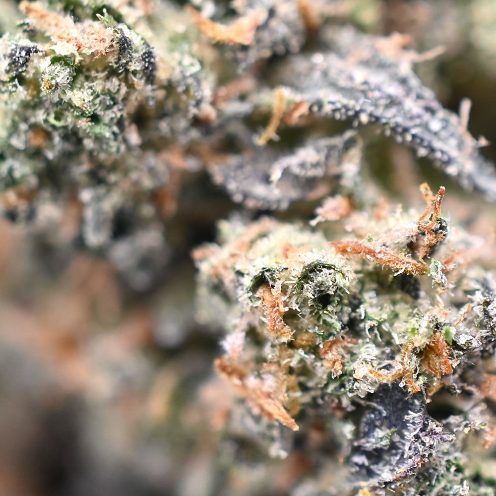 This bud has a sweet and fruity cherry berry flavor with a lightly sour tropical citrus exhale. The aroma is very similar, although it does have a notable punch of sour, tangy apples, too. Cherry Runtz buds have small and fluffy pebble-shaped minty green nugs with deep green leaves, thin orange hairs and a frosty coating of tiny, bright white crystal trichomes.